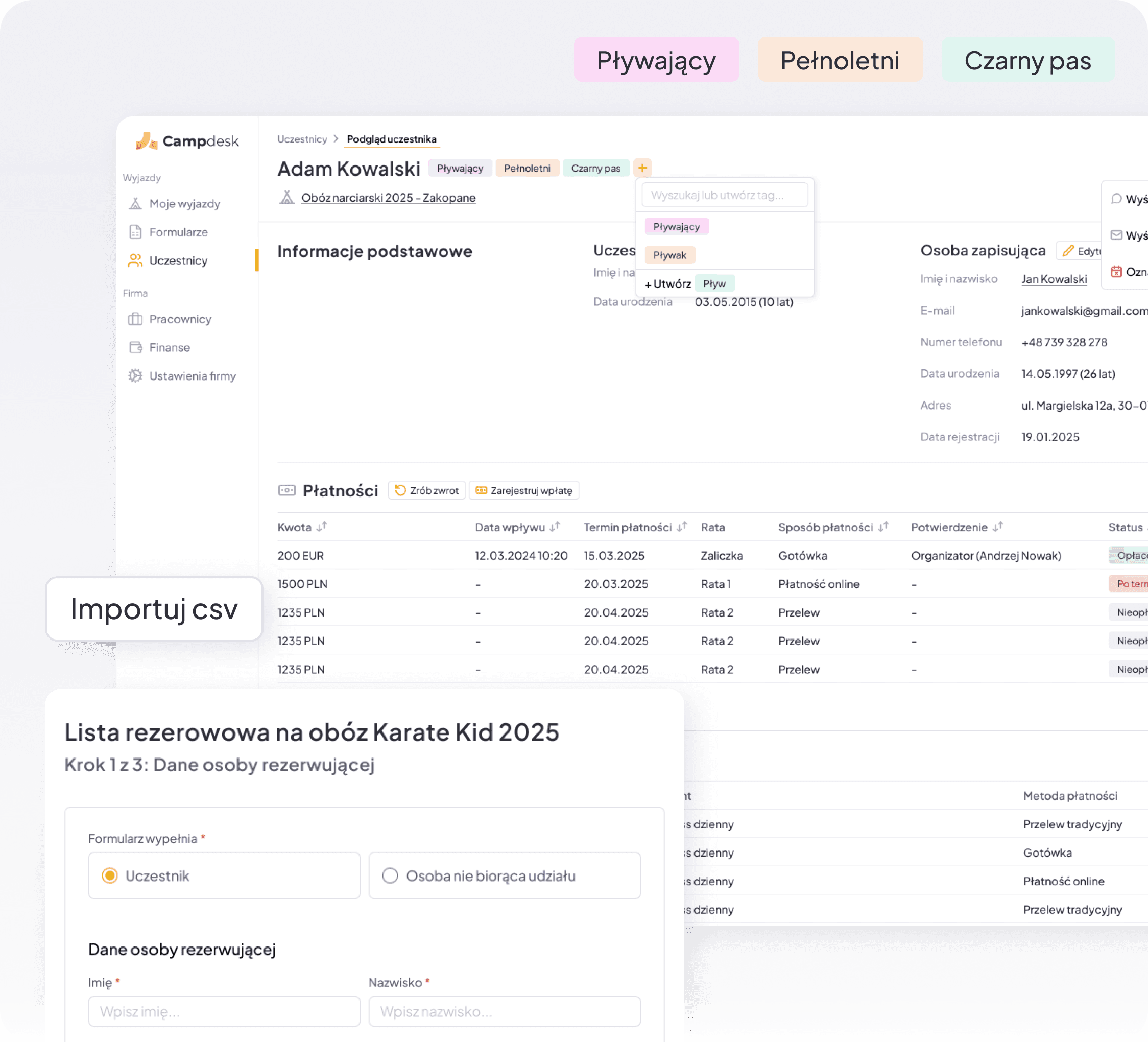 Odkryj, jak Campdesk kończy z chaosem w organizacji wyjazdów. Automatyzacja płatności, formularze rejestracyjne, umowy online i komunikacja z uczestnikami - wszystko w jednym miejscu. Zobacz, jak zaoszczędzić czas i zwiększyć efektywność!