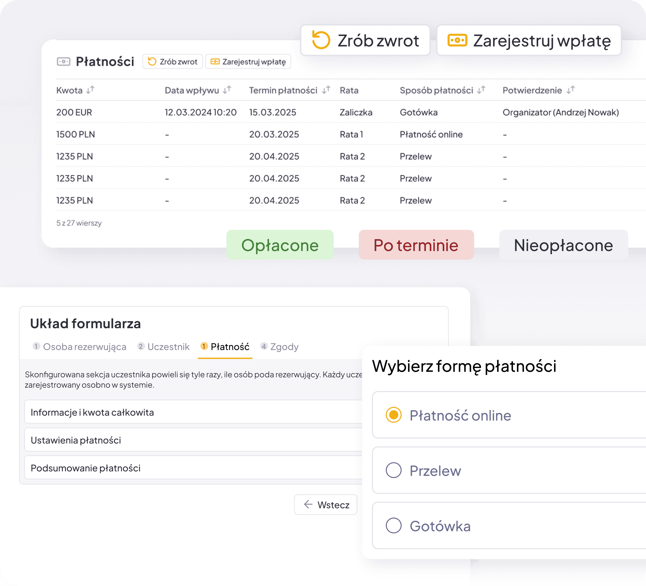 Udostępnij formularz dla swoich klientów i monitoruj cały proces, śledząc zrealizowane płatności i podpisane umowy.