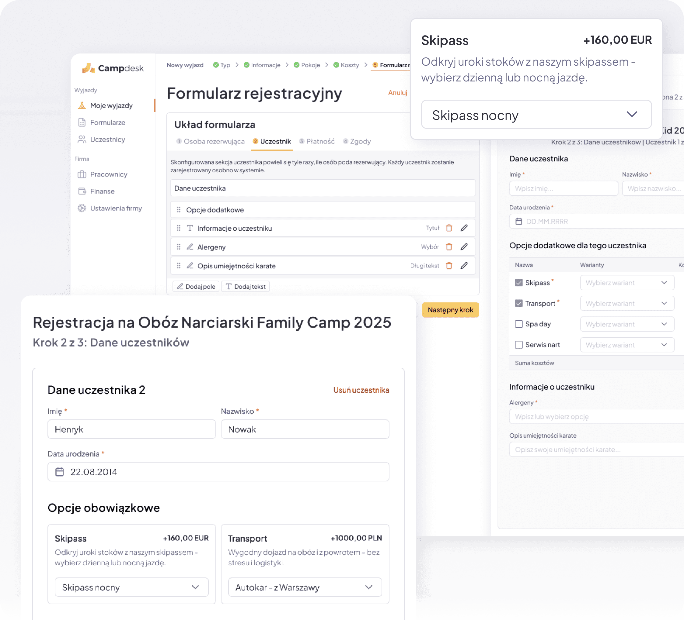 Campdesk to platforma stworzona dla organizatorów wyjazdów, klubów sportowych i touroperatorów, którzy chcą działać szybciej, sprawniej i profesjonalniej. Wszystko, czego potrzebujesz do zarządzania rejestracjami, płatnościami, dokumentacją i komunikacją, znajdziesz w jednym miejscu.